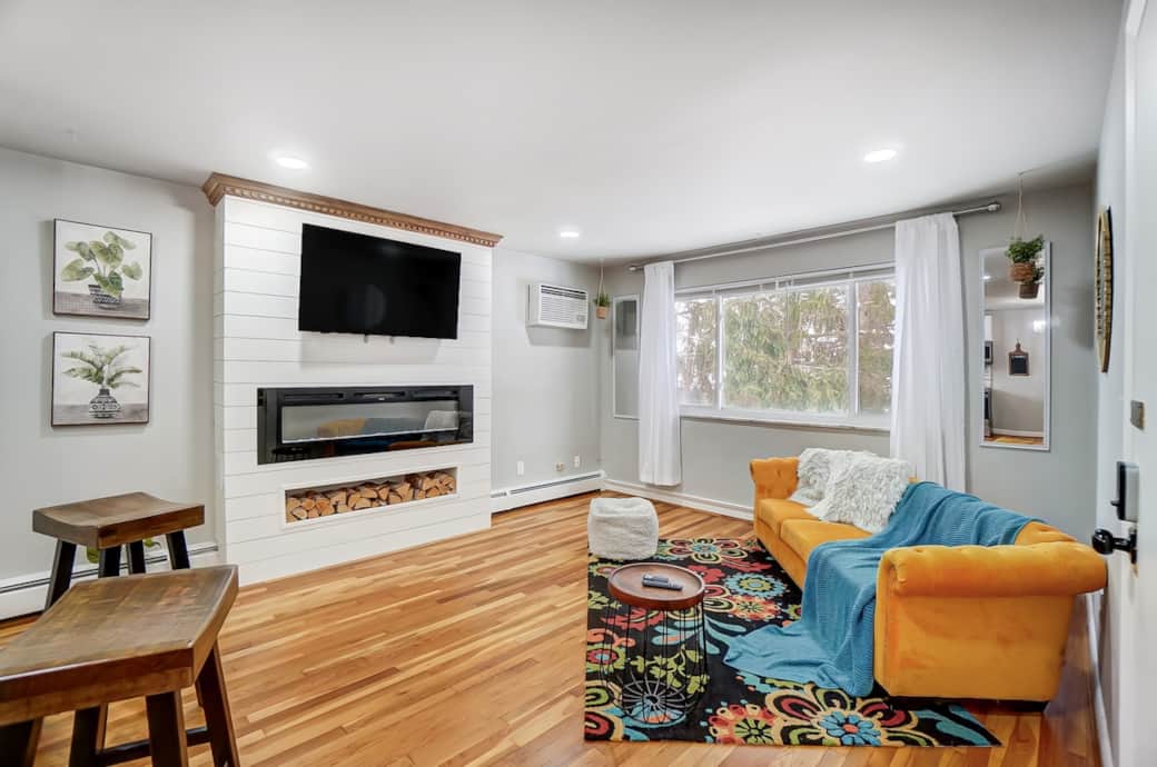 Enjoy a warm fireplace, Wifi, a dedicated workspace, and the convenience of 1 indoor garage parking space.